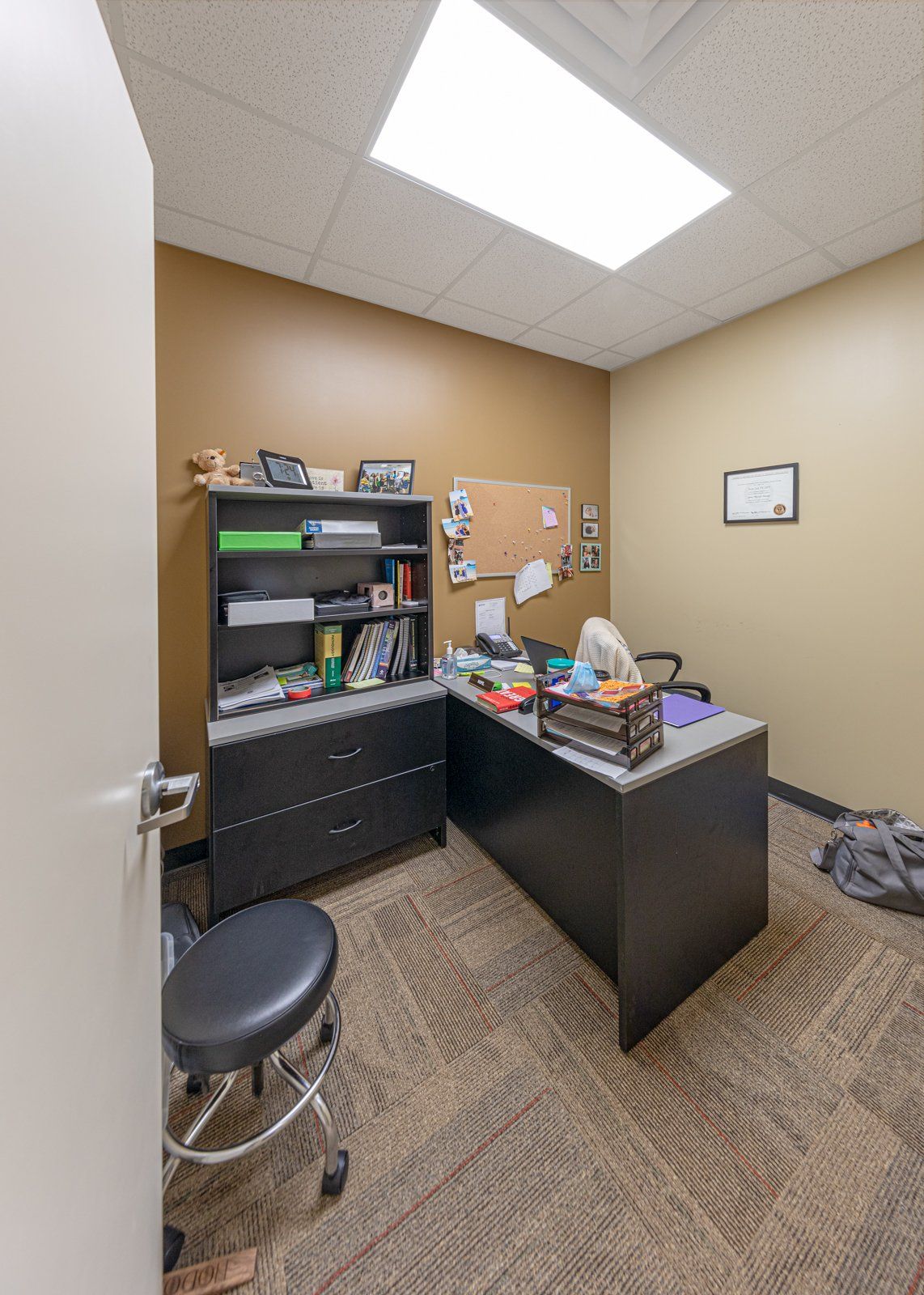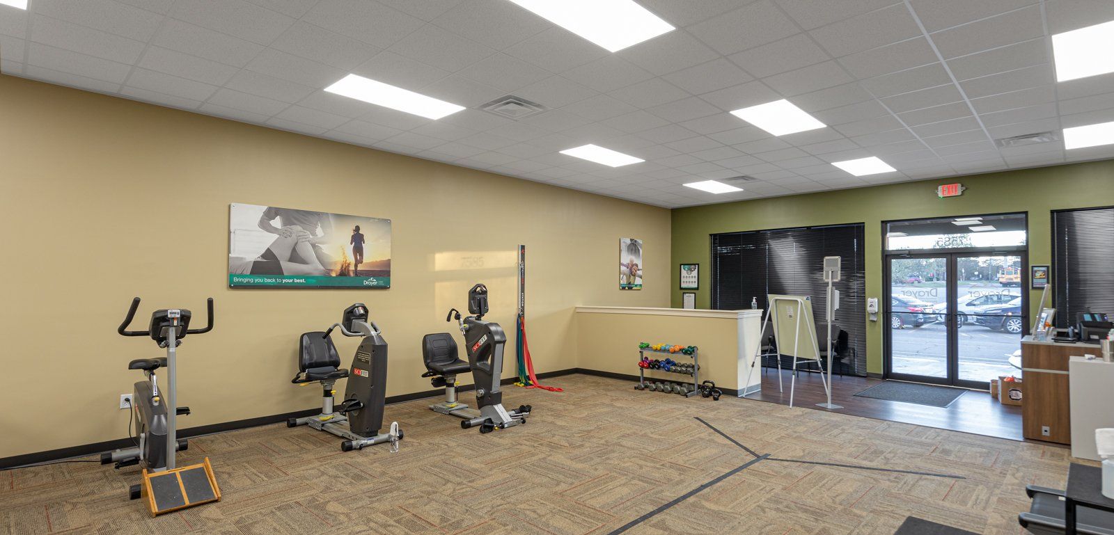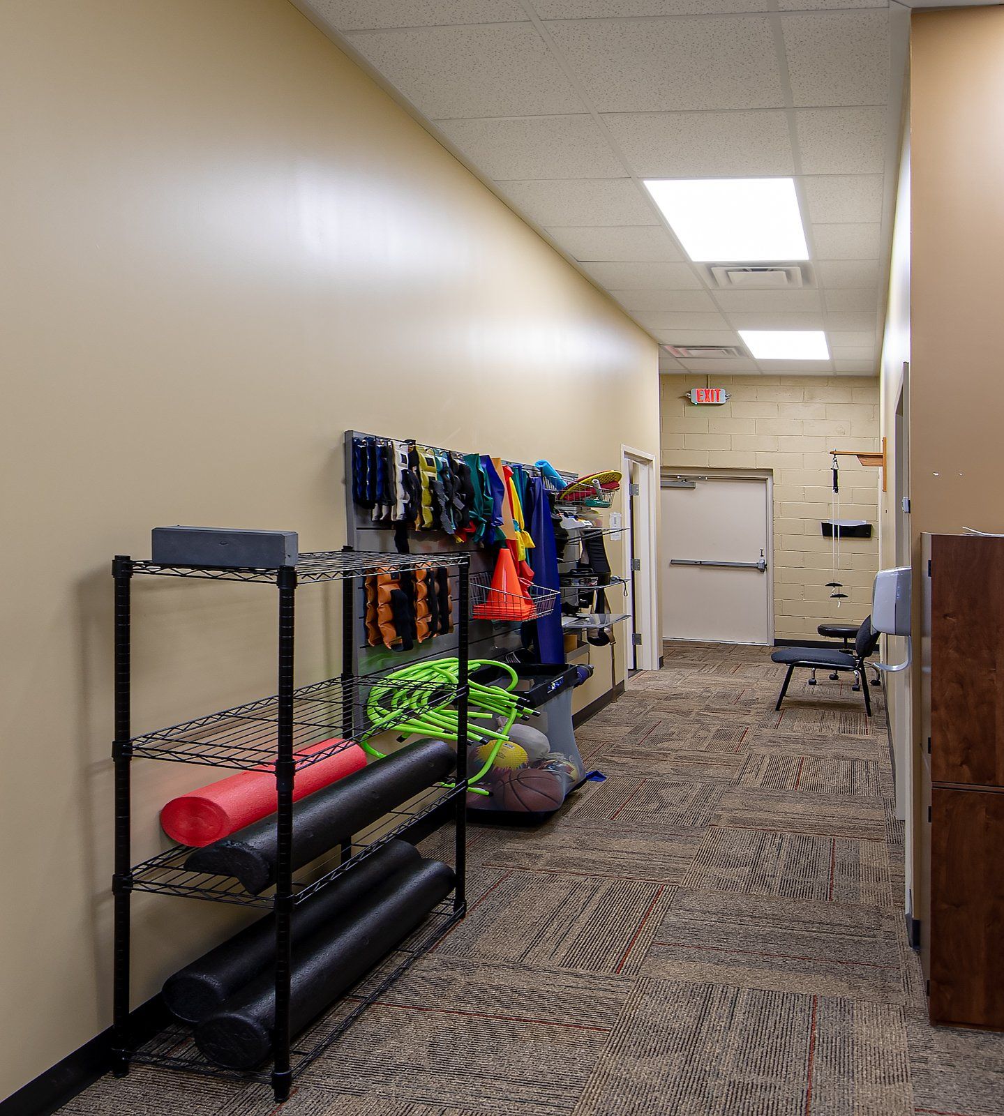 This renovation started with the Sacon team elevating the basics of a 1,375 sq. ft. space for a new location for Drayer Physical Therapy. The new design came with a cheerful and vibrant layout. Our team installed a ceiling grid with acoustical tiles, and LED lay in lighting throughout the space.