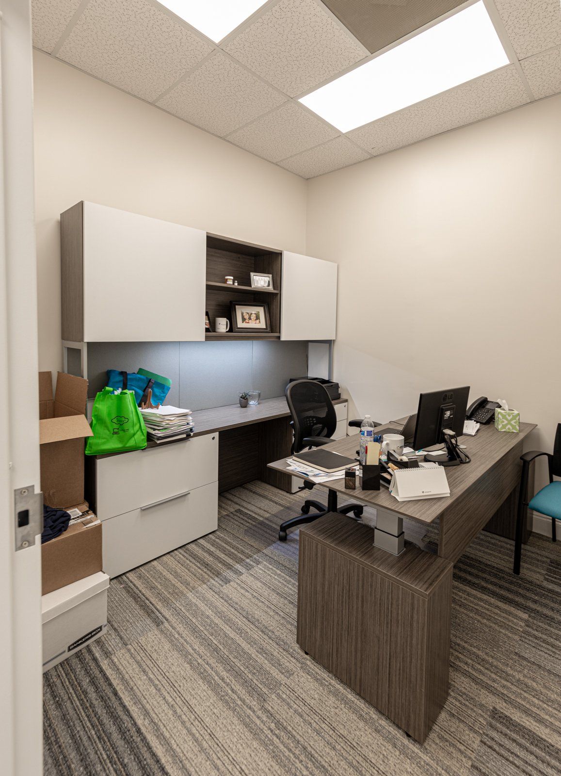 This was a stand alone building with a full interior upfit and exterior renovation. It required us to do a polished concrete floor for the main area which is the best low maintenance and longest lasting floor a customer can install. It also included restrooms, breakroom and private offices along with entry and lobby area. Some of the other special items we installed was a clean ceiling tile system with ceiling mounted cord reels and a patterned carpet squares in the offices and lobby.